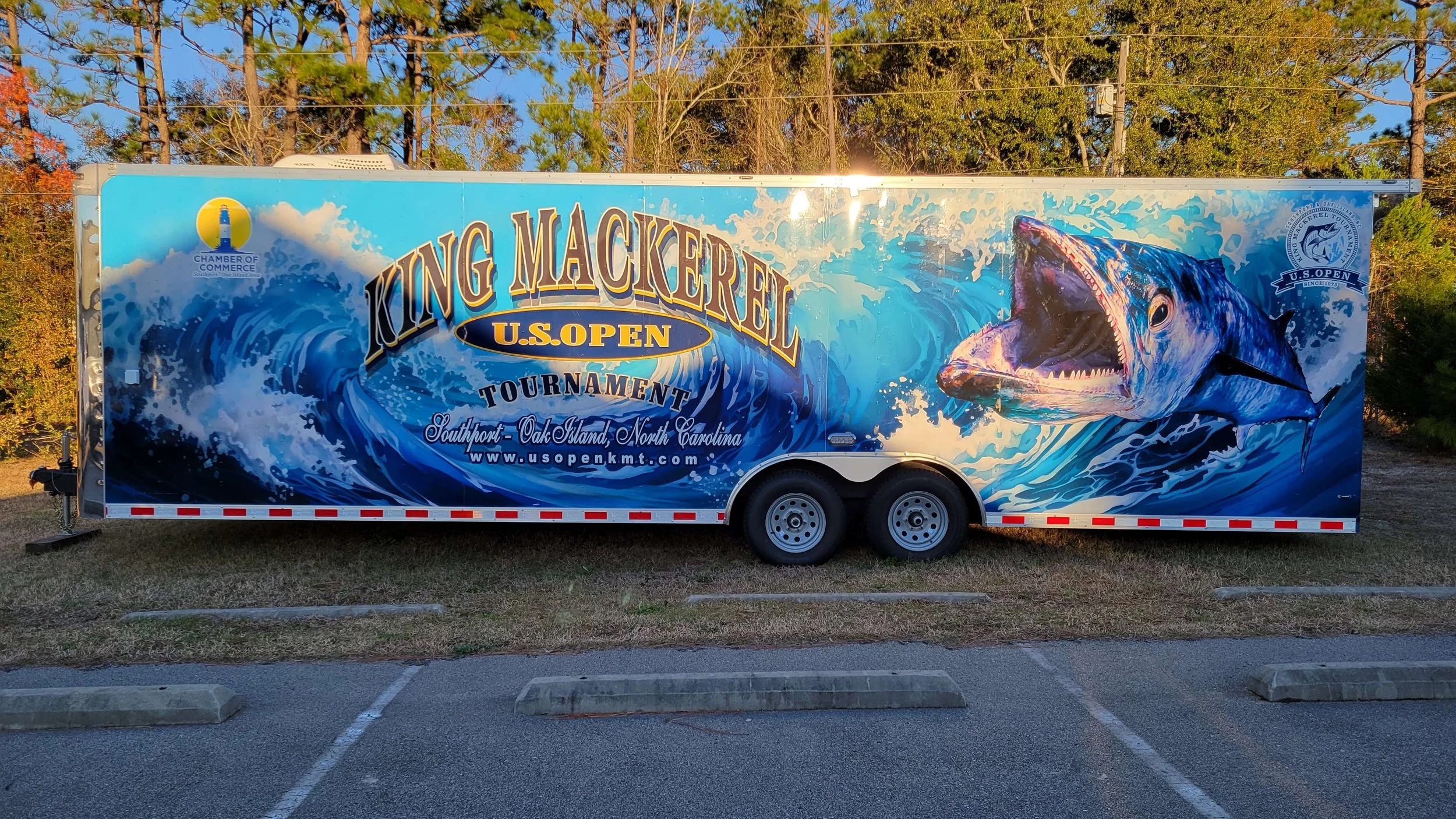 It was incredibly windy this day. So I had to hold the vinyl while it was being unrolled. King Mackerel Tournament Trailer